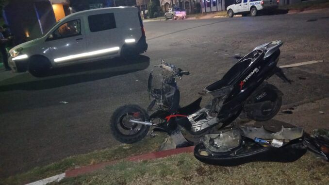 La Comisaria de Eduardo Castex informo que en anoche a lerededor de las 22:00 hs. en la intersección de calles Independencia y Santa Fé se registró un nuevo siniestro vial entre un vehículo tipo furgón Reault Kangoo al mando de un ciudadano piquense y una motocicleta tipo Scooter conducida por un hombre oriundo de esta Ciudad.