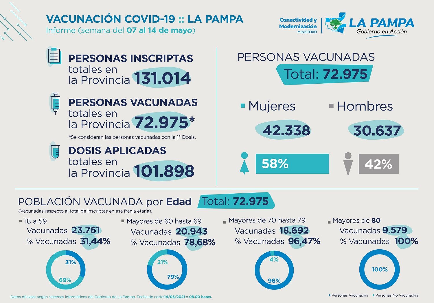 El Gobierno de La Pampa publica a continuación el informe semanal de la marcha del Plan de Vacunación contra la COVID-19 en la Provincia, con datos actualizados a las 8 del día de la fecha.