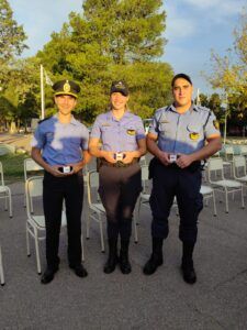 Durante el  dia de ayer  a horas 17:00 en el Instituto Superior Policial de la Provincia,  con la presencia de diversas autoridades se realizo un acto en el marco del día  nacional de la Policía con la entrega de menciones a efectivos policiales de distintas unidades regionales de La Pampa que arriesgaron su vida en cumplimiento del deber, viéndose afectados consecuentemente con heridas de consideración.  Entre ellos, fueron reconocidos numerarios de la Comisaria Departamental de Eduardo Castex Cabo Primero Ezequiel VELAZQUEZ y Cabo Noelia HUMAN también el Encargado de la Subcomisaria de Monte Nievas Oficial Sub Inspector Gabriel MUSH. Los hechos reconocidos obedecen a situaciones, en las que los efectivos policiales en el cumplimiento de sus funciones resultaron con lesiones de consideración impidiendo la comision hechos de caracteristicas delictivas.