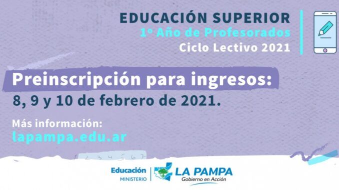 Las inscripciones se realizarán a través del sistema VOZ x VOS. A partir del 1 de febrero de 2021, se publicará mayor información para los/as interesados/as en la página de este Ministerio: https://sitio.lapampa.edu.ar/index.php .
