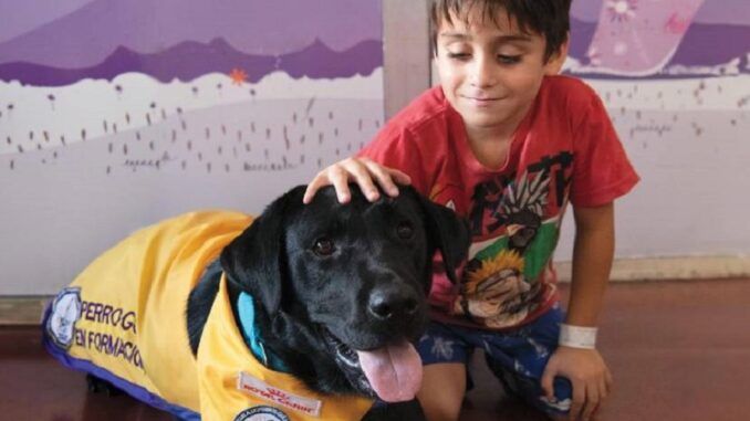 Por primera vez esta semana un niño internado en el Hospital Garrahan tuvo una sesión de «terapia asistida con perros» como parte de su proceso de tratamiento